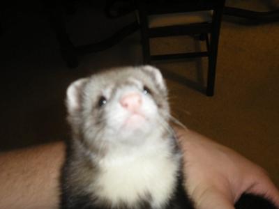 After the first day, Spanky never nipped either of us, but decided to shower us with his woobie kisses whenever we were near. He was always sure to put his toys away whenever mommy or daddy would take them out and put them in the middle of the floor. Each one would be meticulously dragged back to its rightful place, either behind the couch, under the armoire or under the coffee table. The best part was his big fuzzy squeaky tubular dogs that were three times his size. Spanky’s parents used to love watching him drag them back, but he probably got annoyed with us for constantly taking them out so he would have to put them away. Our favorite trait, however, was the way he went poopy in his litter box. Spanky would back into the corner of the litter box and then stretch his neck and head straight up to the sky like a sun salutation. It was so adorable, I have never had a ferret that even made me laugh when he went to relieve himself. LOL